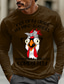 Jul Herr jultomten Rolig T-shirt Långärmad T-shirt 3D-tryck Rund hals Skjorta Mode Grundläggande 3D Gata Ledigt Dagligen Blå Svart Rubinrött Sommar Vår Kläder S M L XL XXL XXXL