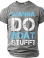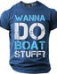Herr t-shirt med "wanna do boat stuff"-motiv, retro, nautisk båtliv, sliten grafik, normal passform, sjöstrandliv, designerkläder, s, m, xl, xxl, xxxl