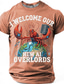 Herr-t-shirt med öppen klo, hummerkung, jag välkomnar våra nya AI-överherrar, jordklot, AI-agent, teknik, nördig programmerare, grafik, normal passform, fritidskläder, vardagskläder, designerkläder,