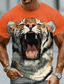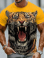 herr-t-shirt med rytande lejon, öppen mun, vassa tänder, 3D-realistisk grafik med djurliv, rund hals, kortärmad, gul, normal passform, avslappnad, cool streetwear, designerkläder, s M L XL XXL XXL
