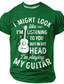 Herr akustisk gitarrnoter Jag kanske ser ut som att jag lyssnar på dig men i mitt huvud spelar jag gitarr rolig sarkastisk musiker t-shirt grafisk kortärmad rund hals avslappnad bandövning