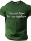 Herr-t-shirt med texten "jag är bara här för min brorson", stolt farbror, familjestöd, grafik, normal passform, sport, matchdag, matchevenemang, designerkläder, kläder, sm, l, xl, xxl, xxxl
