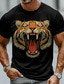 Herr t-shirt med rytande tiger, öppen mun, vassa tänder, stor katt, djurliv, grafik, rund hals, kortärmad, orange, normal passform, casual, streetwear, designerkläder, s m l xl xxl xxxl