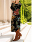 Påsk Dam Midiklänning Solklänning A linjeklänning Semester Ledigt Boho Helgdag Lös passning Blommig Grafisk Färgblock Långärmad V-hals Blå Rubinrött Mörkblå Sommar Vår