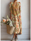 Påsk Kvinnors Maxi Klänning Linne-liknande Andningsbar Lätt Sommarklänning A-linje Klänning Semester Casual Boho Semester Regular Fit Blommig Färgblock Lång ärm V-hals Marin Svart Rosa Orange Sommar