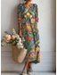 Kvinnors midi-klänning V-hals långärmad kaftan lättvikts löst sittande A-linjeformad klänning avslappnad boho utgång grafisk geometrisk rand långärmad V-hals orange röd svart gul rosa