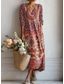 Påsk kvinnors maxi klänning i linne-liknande andningsbart lättviktigt solklänning skiftklänning avslappnad fest semester lös passform blommig paisley långärmad V-hals marinblå röd orange sommar vår