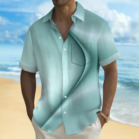 Herr Gradientfärg Abstrakt konst Skjorta Sommarskjorta Knapp upp skjorta Kortärmad Mode Casual Utomhus Semester Vardag Sommar Vår Nedvikt 3D-utskrift krage skjortor Främre en ficka Blå Purpur Grön