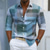 Herr Geometrisk Vågiga Skjorta Knapp upp skjorta Långärmad Mode Casual Utomhus Dagligen Streetwear Vår Höst Nedvikt 3D-utskrift Linne som skjorta Vit Blå Kaki