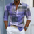 Herr Rutnät / Pläd Geometriska mönster Skjorta Satinskjorta Långärmad Mode Casual Semester Vardag Sommar Vår Höst Nedvikt 3D-utskrift Skjortor med knappar Rodnande Rosa Blå Purpur Mörkblå