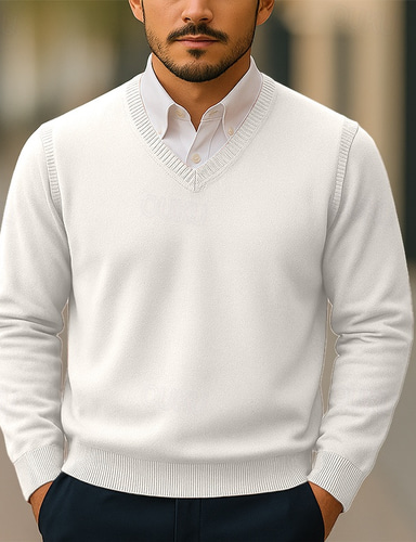 Herr Tröja väst Klänning tröja Pullover tröja Stickad tröja Ribbad Kabel Sticka Vanliga toppar Stickat Slät V-hals Håller värmen Modernt Modernt Dagliga kläder Utekväll Kläder Höst Vinter Vit Vin M L