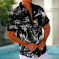 Herr Blommig Hawaii skjorta Aloha skjorta Kortärmad Hawaiisk Tillflykt Casual Ledigt Sommar Vår Nedvikt Knappen uppåt Ficka Svart Blå Purpur Grön