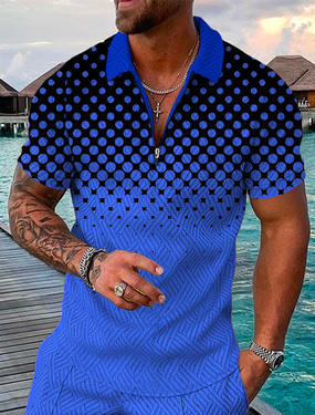 Herr Geometrisk Pikétröjor med dragkedja Golftröja Kortärmad Polotröjor Skjortor med krage Business Casual Semesterkläder Högtidskläder Festivalkläder 3D-utskrift Quarter Zip Polo Blå Svart / Gr