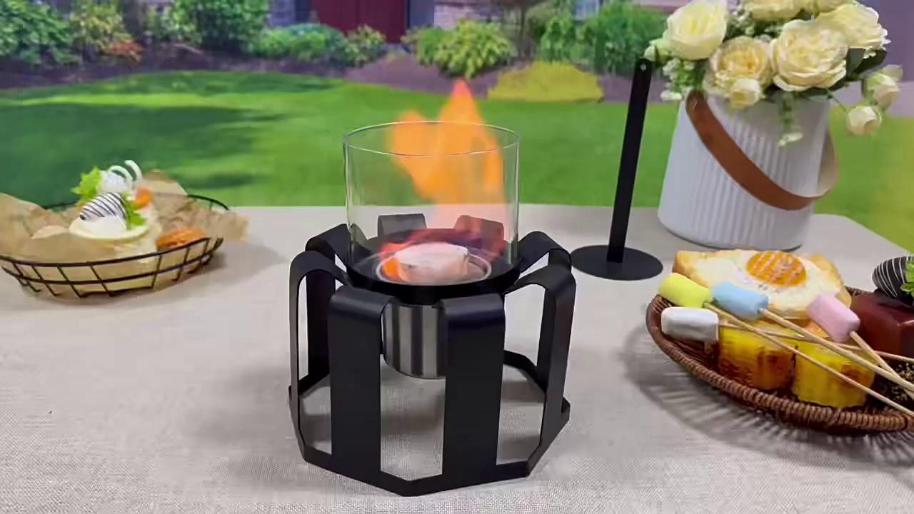 Bordeldstad utomhus eldstad med glasbord och fjärrkontroll för camping