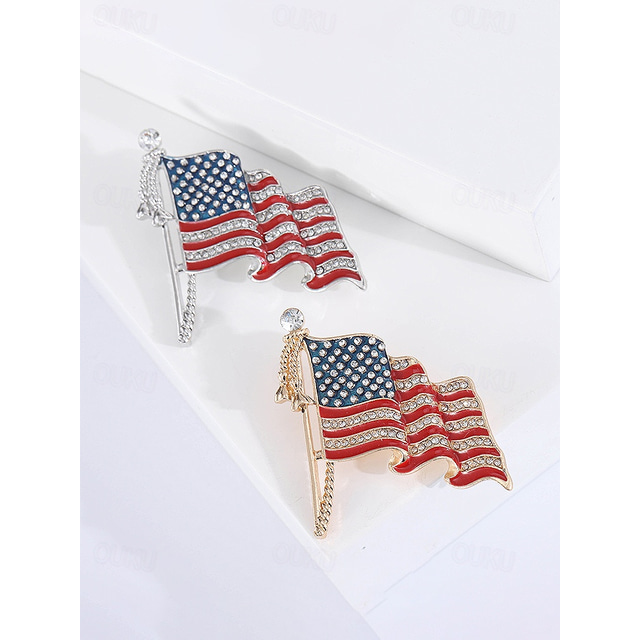 Patriotiska broscher i legering för kvinnor, guld- och silverfärger, 2-delade nålar med USA-flaggan, perfekta för USA:s 250-årsjubileum, självständighetsdagen och vardagskläder