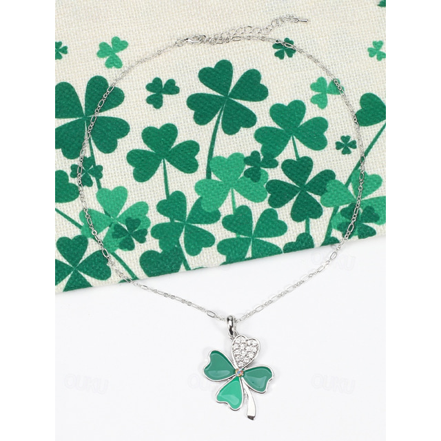 Klöverhalsband för damer, St. Patrick's Day-motiv, grönt hängsmycke i slitstark legering, flera stilar inklusive shamrock och hästsko, festliga irländska smycken för parader, fester och högtidskläder.