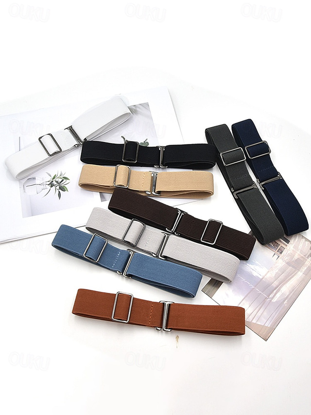 Dambälte i polyester med elastiskt stretch, justerbart, osynligt midjebälte med platt spänne, flera färger för utomhusaktiviteter, vardagskläder och resor, bekvämt, osynligt bälte för jeans