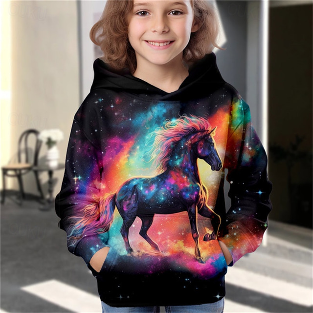 Kön:Flickor,Åldersgrupp:Barn,Stil:Aktiv,Designer,Mode,söt stil,Streetwear,Tillfälle:Utomhus,Dagligen,Ledigt,Barnkläder:Huvtröja,Pullover,Material:Polyester,Mönster:Galax,Enhörnings,Ärmlängd:Långärmad,Design:Ficka,Ålder:3-12 år,Årstid:Vinter,Höst,Ta hand om mig:Maskintvätt,Axelbredd (cm):110 cm:29;120 cm:31;130 cm:33;140 cm:35;150 cm:37;11-12 år (160cm):39,Ärm (cm):110 cm:39;120 cm:42.5;130 cm:46;140 cm:50;150 cm:54;11-12 år (160cm):58,Elasticitet:Microelastisk,Passform:Normal,Byst (cm):110 cm:72;120 cm:76;130 cm:80;140 cm:84;150 cm:89;11-12 år (160cm):94,Längd (cm):110 cm:44;120 cm:47.5;130 cm:51;140 cm:54.5;150 cm:58;11-12 år (160cm):61.5,Utskrifttyp:3D-tryck,