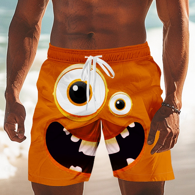 Herr 3D-seriefigur Le ansikte Stora ögon Badshorts Boardshorts Medium Midja Rolig Utomhus Semester Vardag Sidfickor Mesh foder Elastisk dragsko i midjan Designer Kläder