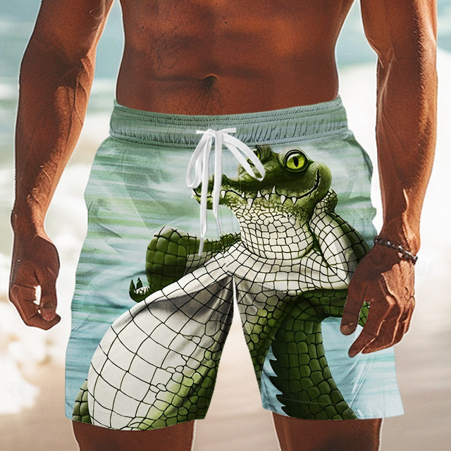 Herr Djur Krokodil Rolig Badshorts Boardshorts Medium Midja Hawaiisk Utomhus Semester Vardag Sidfickor Mesh foder Elastisk dragsko i midjan Designer Kläder