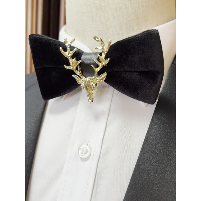 Herrfluga i sammet med nål i guldfärgat rådjurshuvud, elegant justerbar halsringning i flera färger, perfekt för julfester, bröllop och formella högtidsevenemang