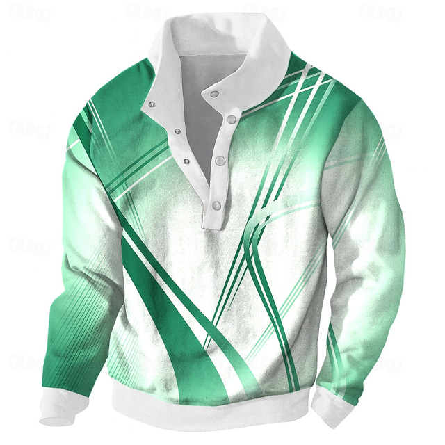 Herr Geometrisk Tröja Mode Dagligen Enkel Ledigt Långärmad Hög hals Semester Utekväll Blå Purpur Grön Knappar Höst Vinter Designer S M L XL XXL 3XL