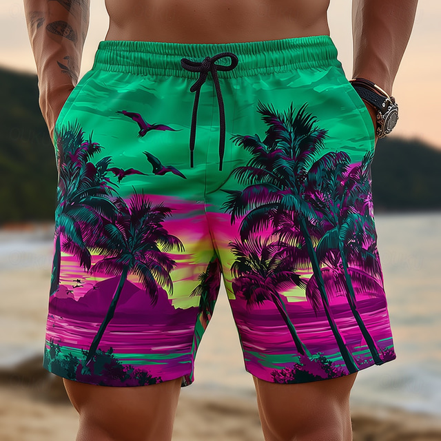 Herr Kokosnötsträd Natur och landskap Tropiska växter Badshorts Boardshorts Medium Midja Hawaiisk Strandsemester Sidfickor Mesh foder Elastisk dragsko i midjan Designer Kläder