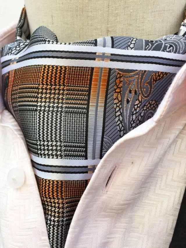 [Tyg]: Tillverkad av premium polyester, kombinerar denna slips hållbarhet med en lyxig lyster, och erbjuder en slät och elegant textur som är både bekväm och stilfull. [Design & Mönster]: Denna herraccessoar har ett förfinat rutigt jacquardmönster som sömlöst förenar traditionell elegans med en modern twist. De intrikata detaljerna av klassiska paisleymotiv sammanflätade med rutiga accenter i en palett som sträcker sig från blått och brunt till rött och lila förstärker dess sofistikerade attraktion. [Stil & Passform]: Ascot- eller cravat-slipdesignen ger en mångsidig passform som kompletterar en krispig vit skjorta eller vilken formell klädsel som helst, och lägger en distingerad touch till din ensemble. Den är utformad för att sitta perfekt runt halsen, vilket gör den lämplig för formella tillställningar eller affärsmiljöer. [Tillfällen]: Perfekt för bröllop, professionella arbetsmiljöer eller vilket evenemang som helst där en gnutta gentlemanlig elegans krävs, är denna slips perfekt för att göra ett förfinat modeuttalande. Den passar bra med en mängd olika kostymstilar och färger, vilket säkerställer att du ser felfri ut i varje miljö. [Storlek]: Finns i en one-size-fits-all-design, är denna slips tillverkad för att bekvämt passa en rad olika halsstorlekar, vilket gör den till ett nödvändigt tillskott i varje mans garderob.