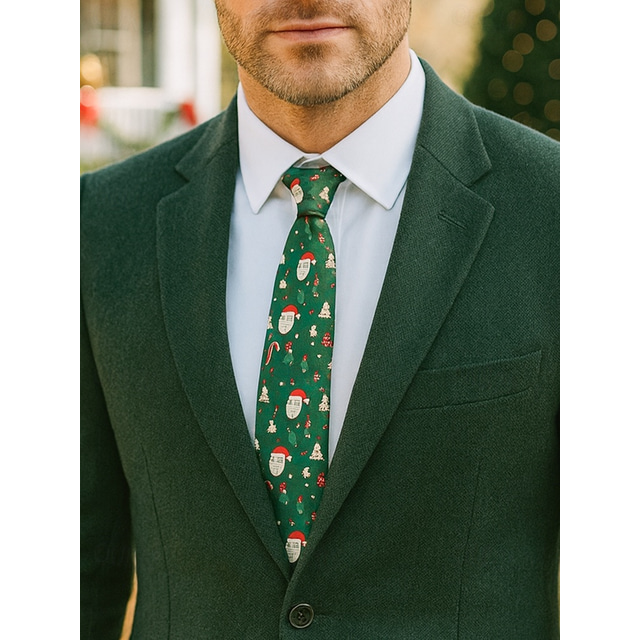 Julslipsar i polyester för män – designade med jultomte, snögubbe och högtider, perfekta för julfester och festliga tillfällen