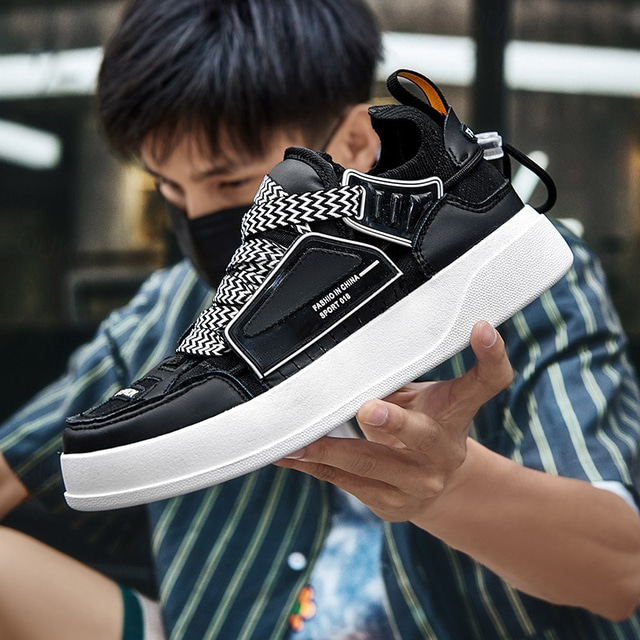 gröna high-top sneakers för män med flerfärgade skosnören och kardborreband – snygga fritidssportskor för streetwear och vardagsbruk