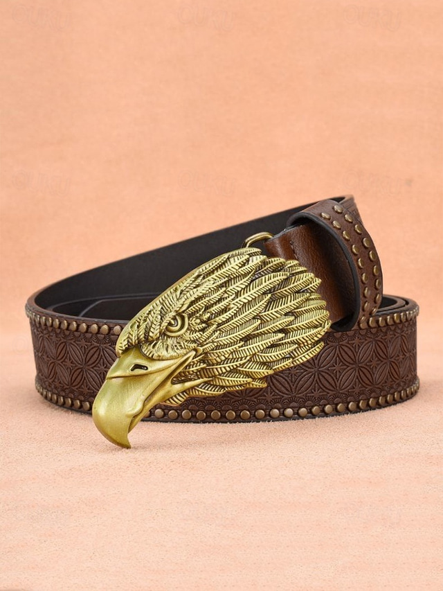 Herrbälte med örnhuvudspänne i western – präglat vintagebälte i konstläder med nitar för cowboys, utomhusevenemang och lantlig stil