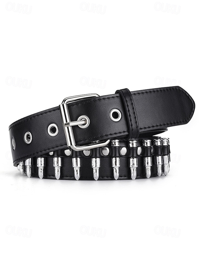 punkrock kuldubbbälte för män – svart gotiskt nitbälte i konstläder med metallspänne för cykel-, konsert- och festivalkläder