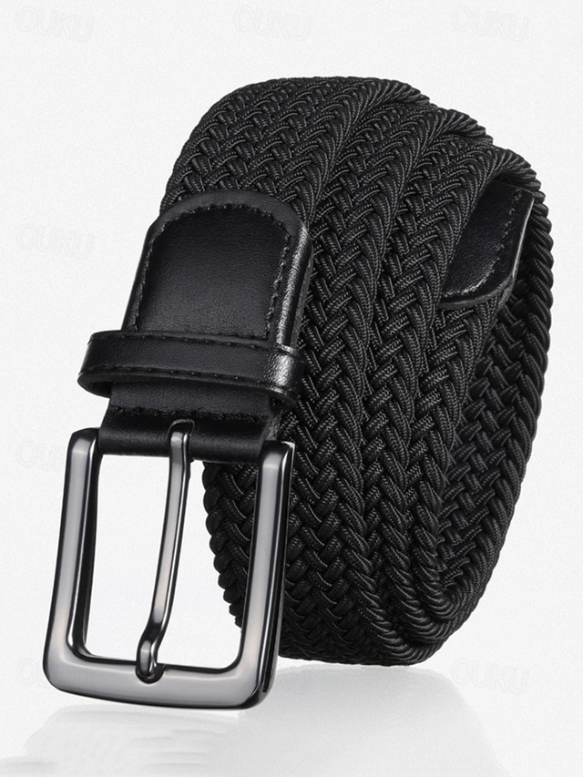 elastiskt vävt flätat bälte för män – justerbart stretchbälte med läderspänne för vardagliga, affärs- och utomhustillfällen