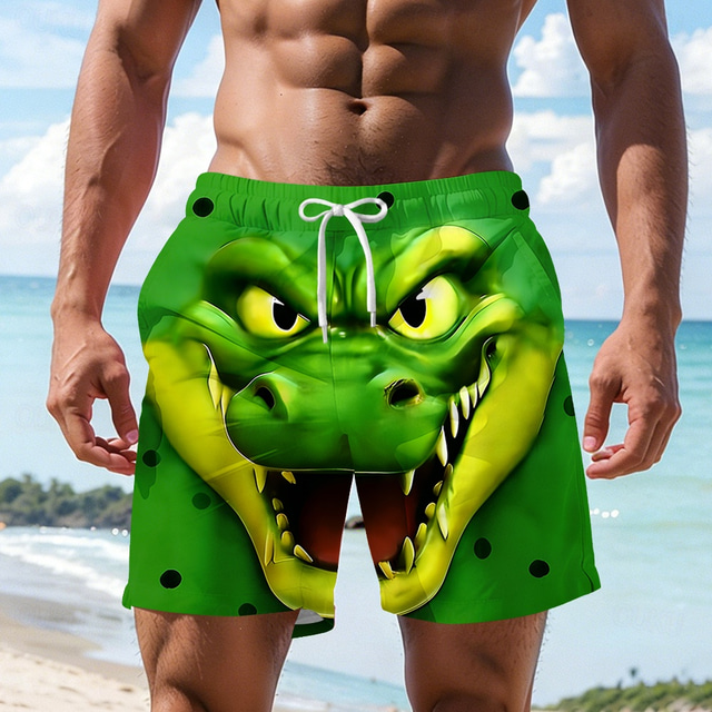 Herr Tecknat Krokodil Rolig Badshorts Boardshorts Medium Midja Hawaiisk Strandsemester Sidfickor Mesh foder Elastisk dragsko i midjan Designer Kläder