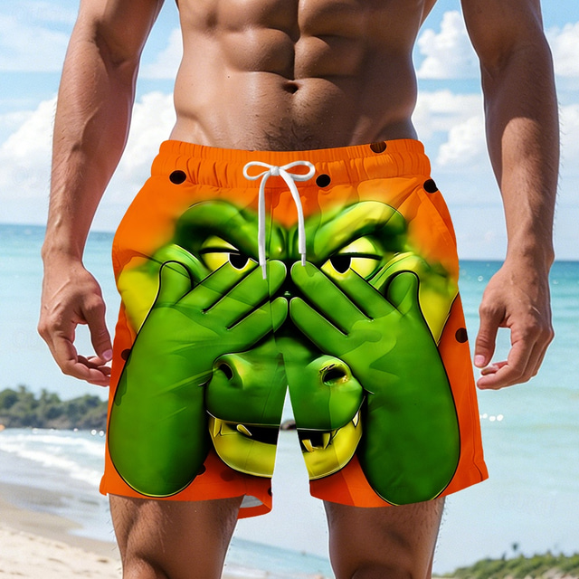 Herr Tecknat Krokodil Täckande ögon Badshorts Boardshorts Medium Midja Hawaiisk Rolig Strandsemester Sidfickor Mesh foder Elastisk dragsko i midjan Designer Kläder