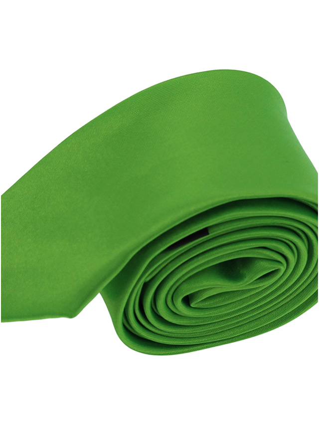 [Designegenskaper]: Slipsens minimalistiska design i enfärger, såsom klassisk svart eller rik grön, förmedlar en tidlös elegans. Den släta, blanka ytan förstärker dess formella estetik, vilket gör den till ett viktigt tillbehör för varje välklädd gentleman.
