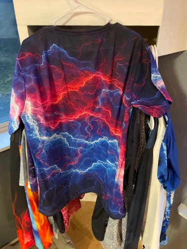 this shirt is electric. it fits true to size and really elicits attention. all who have commented about the shirt really like the vivid colors. I will probably reorder this shirt as I wear it often. this shirt is electric. it fits true to size and really elicits attention. all who have commented about the shirt really like the vivid colors. I will probably reorder this shirt as I wear it often.