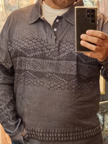 Nice sweater. Very thin fabric though, but nice that it has a slight waffle structure. It is a bit shiny to my taste, due to the fabric which is polyester.. Comfortable to wear. The colour and pattern is printed on. No cleaning instructions attached, so I recommend to wash it separately by hand in lukewarm water. Fairly true to the colour on the photo in the webpage. Nice sweater. Very thin fabric though, but nice that it has a slight waffle structure. It is a bit shiny to my taste, due to the fabric which is polyester.. Comfortable to wear. The colour and pattern is printed on. No cleaning instructions attached, so I recommend to wash it separately by hand in lukewarm water. Fairly true to the colour on the photo in the webpage.