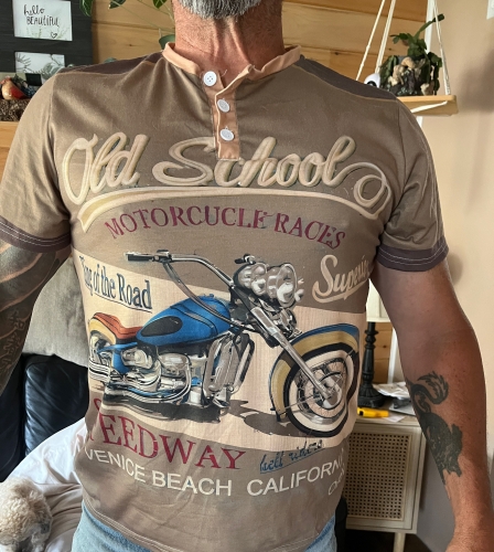 Das Shirt sieht gut aus und der Stoff ist angenehm zu tragen. Leider muss man eine Nummer größer bestellen, da es Sonst zu eng ist. Das Shirt sieht gut aus und der Stoff ist angenehm zu tragen. Leider muss man eine Nummer größer bestellen, da es Sonst zu eng ist.