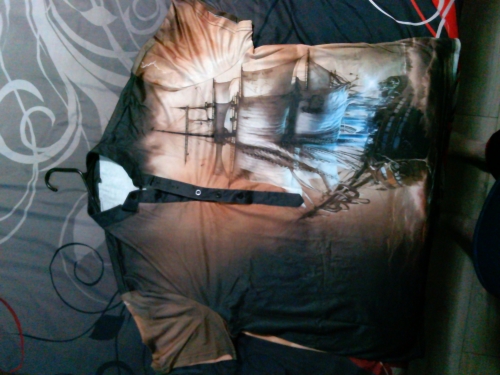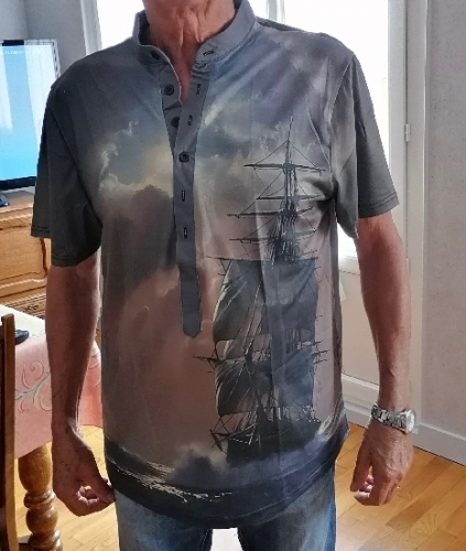 Product as described and pictured, blue shirt ship pattern size XL, fits well and is comfortable. Product as described and pictured, blue shirt ship pattern size XL, fits well and is comfortable.