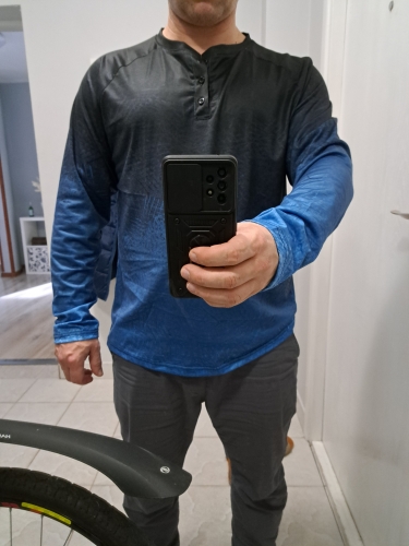 It’s very nice and it’s comfortable. Sleeves are perfect length for an XL person with 44 inch chest. It has a button on the collar that I don’t recall originally in the posting. It’s very nice and it’s comfortable. Sleeves are perfect length for an XL person with 44 inch chest. It has a button on the collar that I don’t recall originally in the posting.