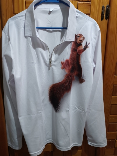 leffet relief sur le tee-shirt est excellent. Vraiment une impression que lécureuil est posé. leffet relief sur le tee-shirt est excellent. Vraiment une impression que lécureuil est posé.