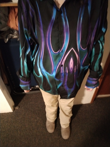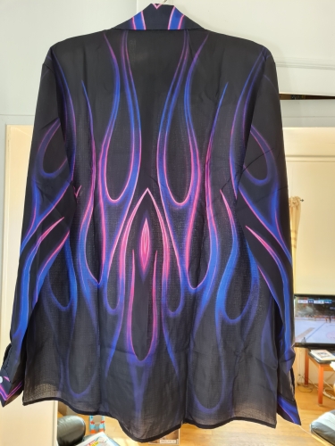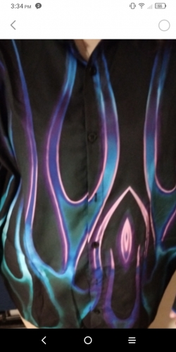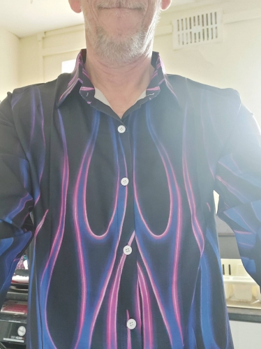 I thought I would treat myself to this colourful shirt. Great Graphic Flame Pattern & good quality material & at a great price. I thought I would treat myself to this colourful shirt. Great Graphic Flame Pattern & good quality material & at a great price.