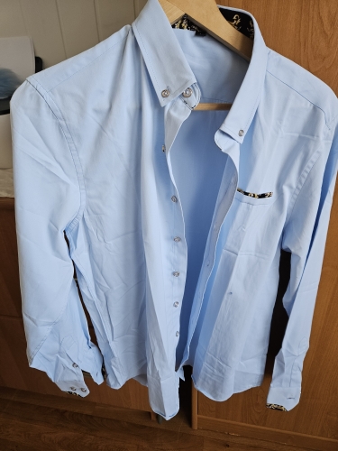 Trés jolie chemise blanche avec des poignets de couleur originale à un prix abordable que je me ferai plaisir en la portant ,je la recommande à déventuels acheteurs. Trés jolie chemise blanche avec des poignets de couleur originale à un prix abordable que je me ferai plaisir en la portant ,je la recommande à déventuels acheteurs.
