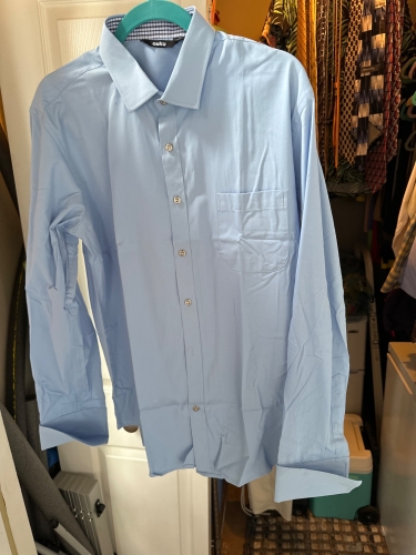 Commandé du XL pour mon ami qui met du 42.Très joli bleu et taille impeccable. Jolies boutons de manchettes. Commandé du XL pour mon ami qui met du 42.Très joli bleu et taille impeccable. Jolies boutons de manchettes.