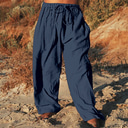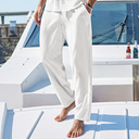 Herr Linne Byxor Långbyxor Sommarbyxor Strandbyxor Snörning Elastisk midja Rakt ben Slät Komfort Utomhus Ledigt Dagligen Streetwear Stylish Vit Marinblå |