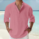 Herr Linneskjorta Popover skjorta Casual skjorta Strandskjorta Bandkrageskjorta Slät Strand Semester Blå Svart Vit Rodnande Rosa Långärmad Henley Vår & sommar Kläder |