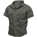 Herr Viking stil Sommarskjorta Standkläder Casual skjorta Slät Semester Curise Brun Kaki Beige Långärmad V-hals Vår & sommar Kläder |