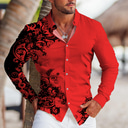 Herr Blommig Skjorta Knapp upp skjorta Långärmad Tropisk Mode Designer Ledigt Dagligen Utomhus Höst vinter Nedvikt Mönster Button-Down Blå Vit Rubinrött Ljusblå |