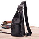brun crossbody-väska i läder med flera fickor med dragkedjor för män |